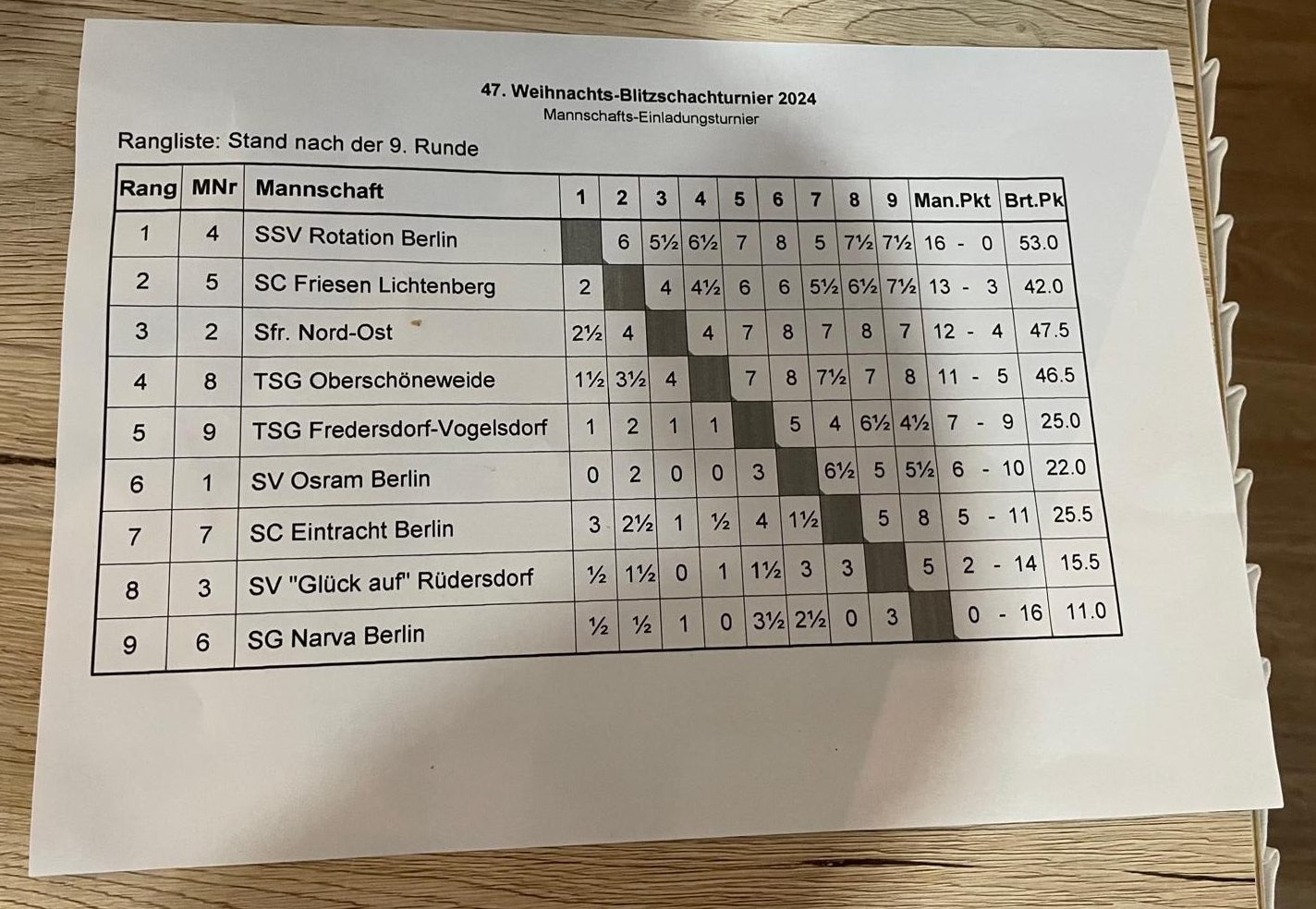 Um Platz zwei stellte sich dann ein Dreikampf zwischen TSG Oberschöneweide, Sfr. Nord-Ost und unserer Delegation heraus. TSG und wir spielten gegen Nord-Ost 4:4 und so kam es in der letzten Runde zum Showdown um Platz zwei.